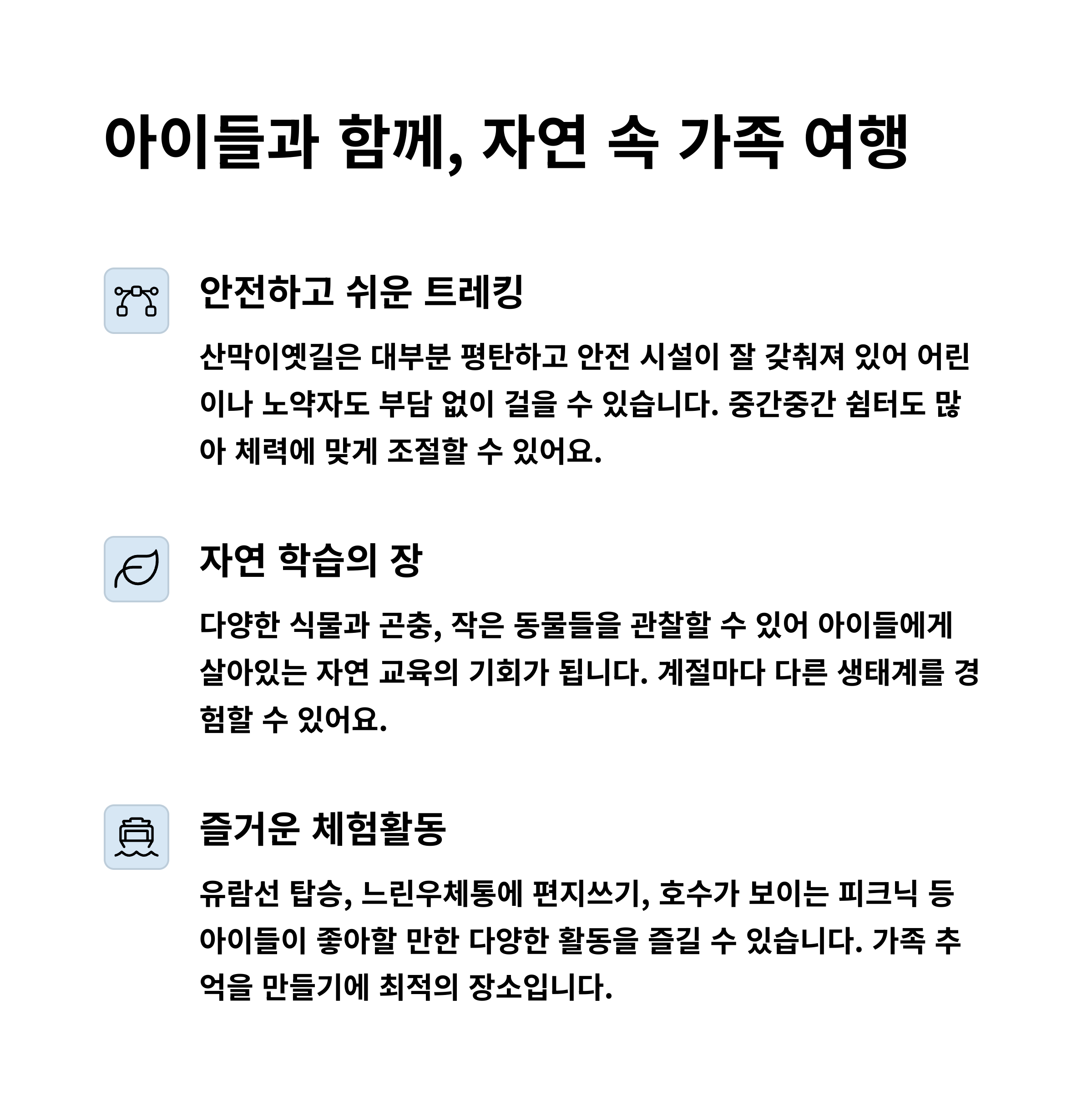 "트레킹 초보자도 부담 없이 즐길 수 있는 코스입니다!" 😊