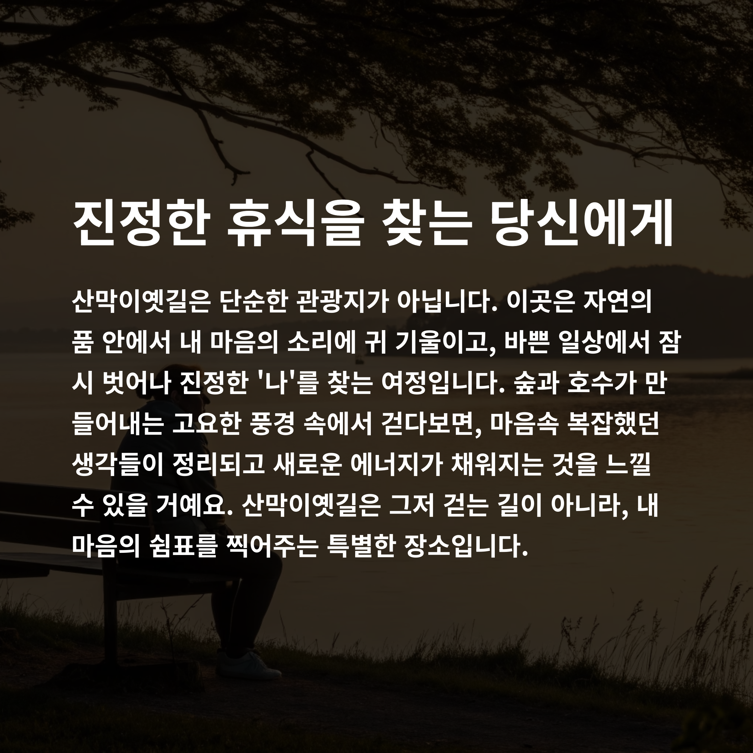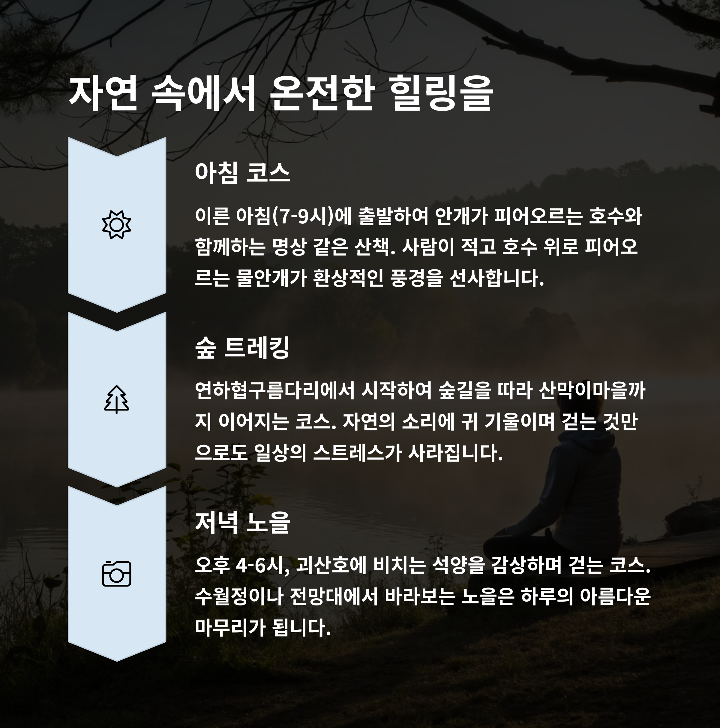 "복잡한 건 싫고, 조용한 자연 속에서 진짜 쉼을 찾고 싶다면?"