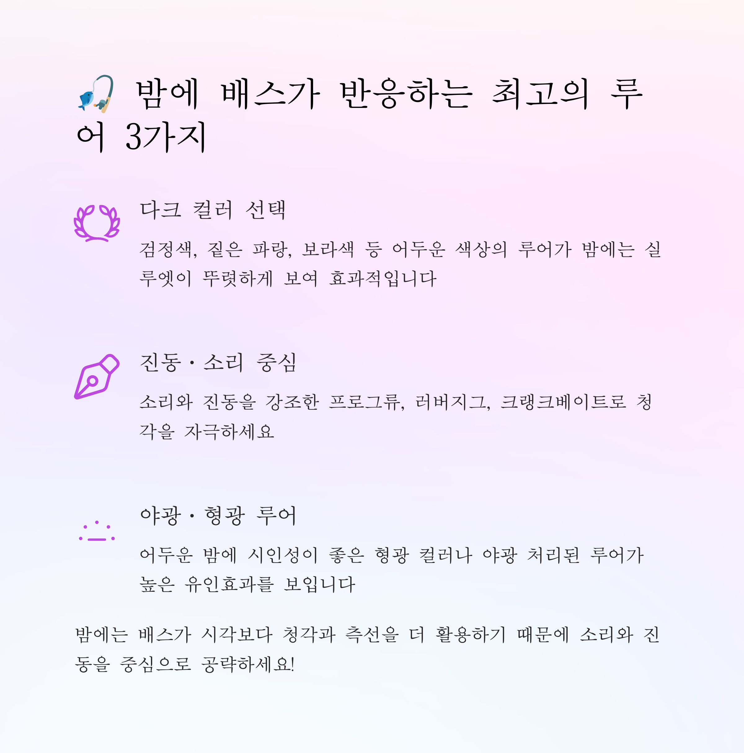 "밤엔 시끄럽고 진동 강한 루어가 답이다"