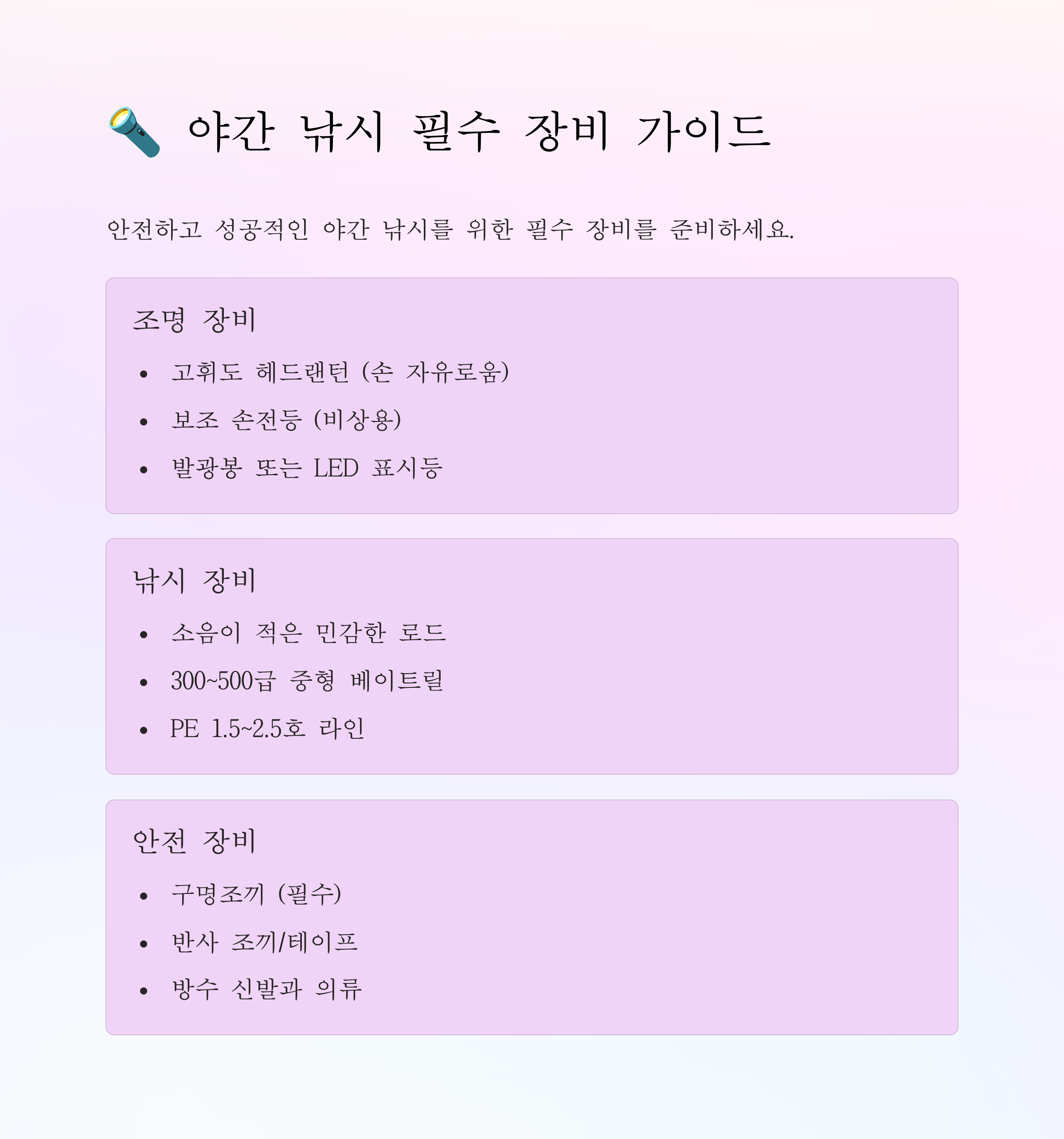 야간 낚시는 낮보다 준비물 하나하나가 더 중요한 이유입니다