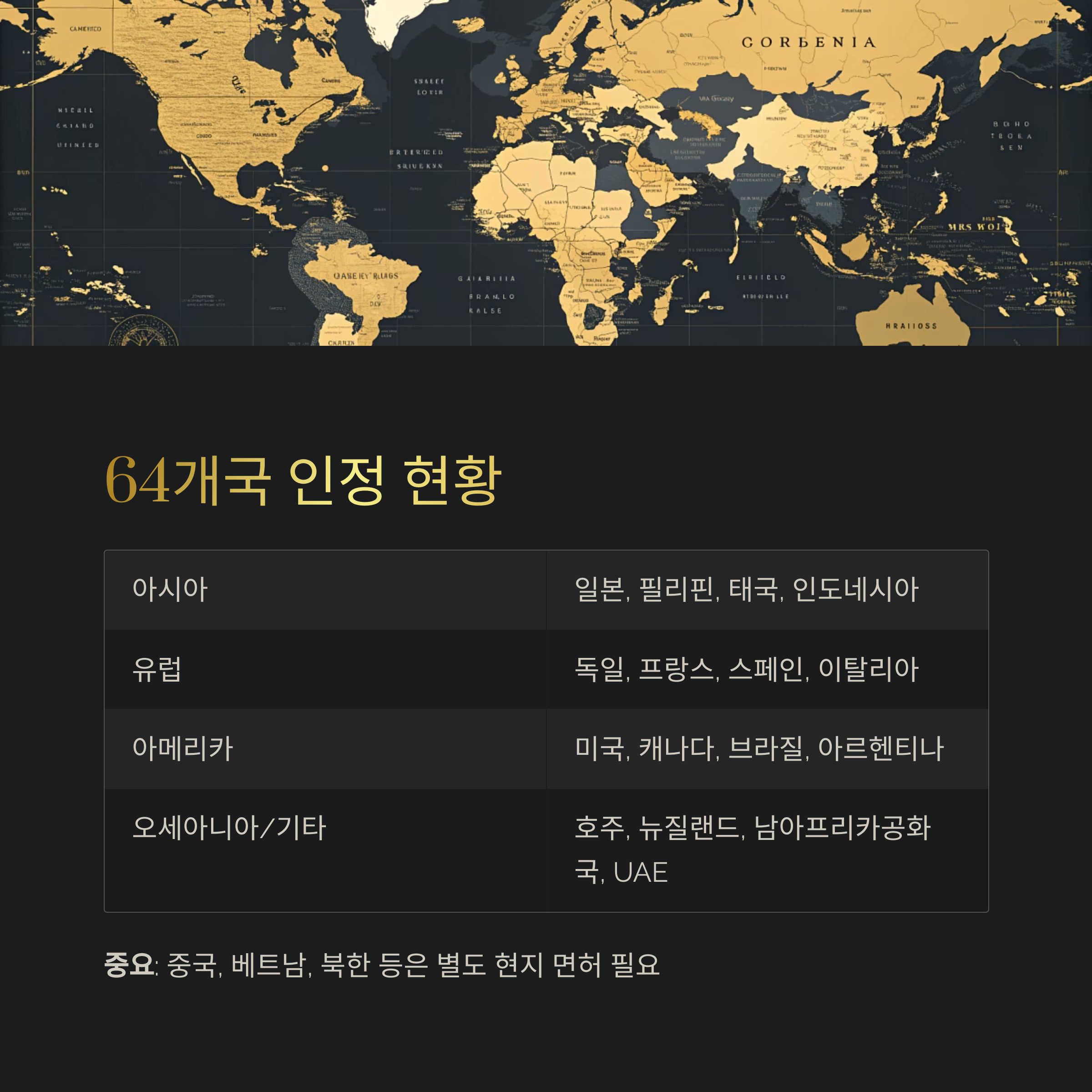 발급 가능한 64개국과 사용 시 유의사항
