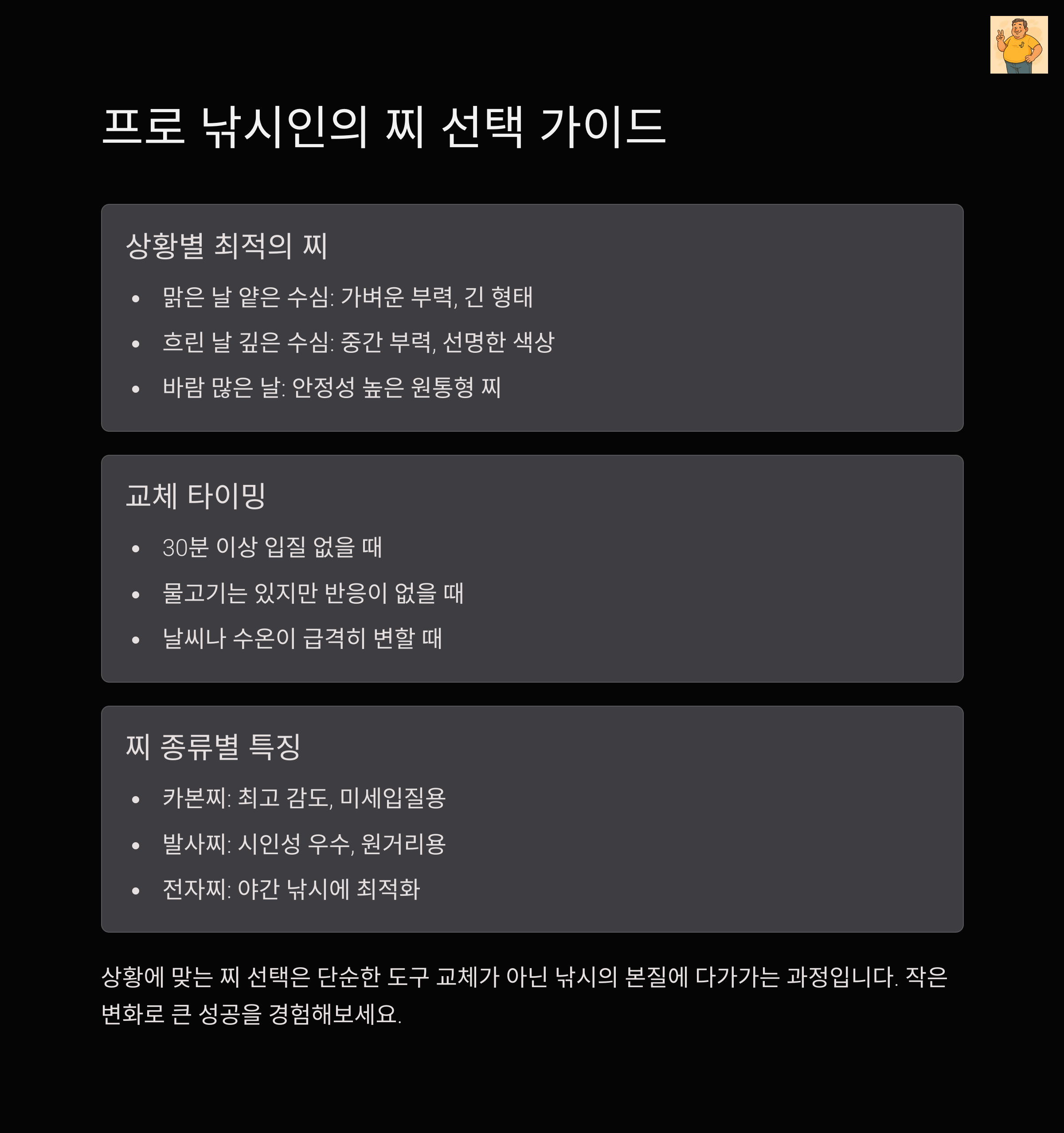낚시인 팁 - 찌 선택 시 고려해야 할 핵심 포인트