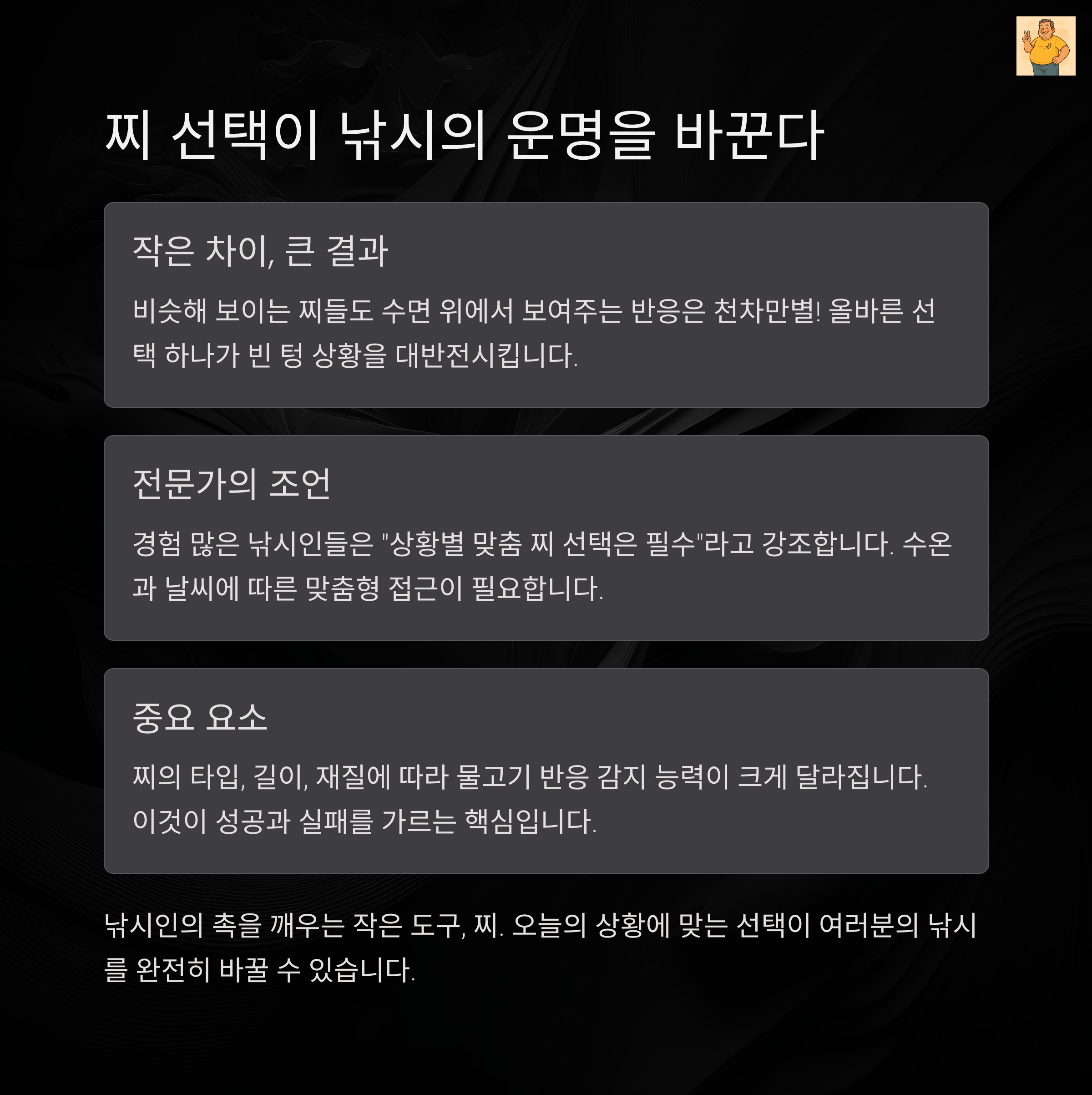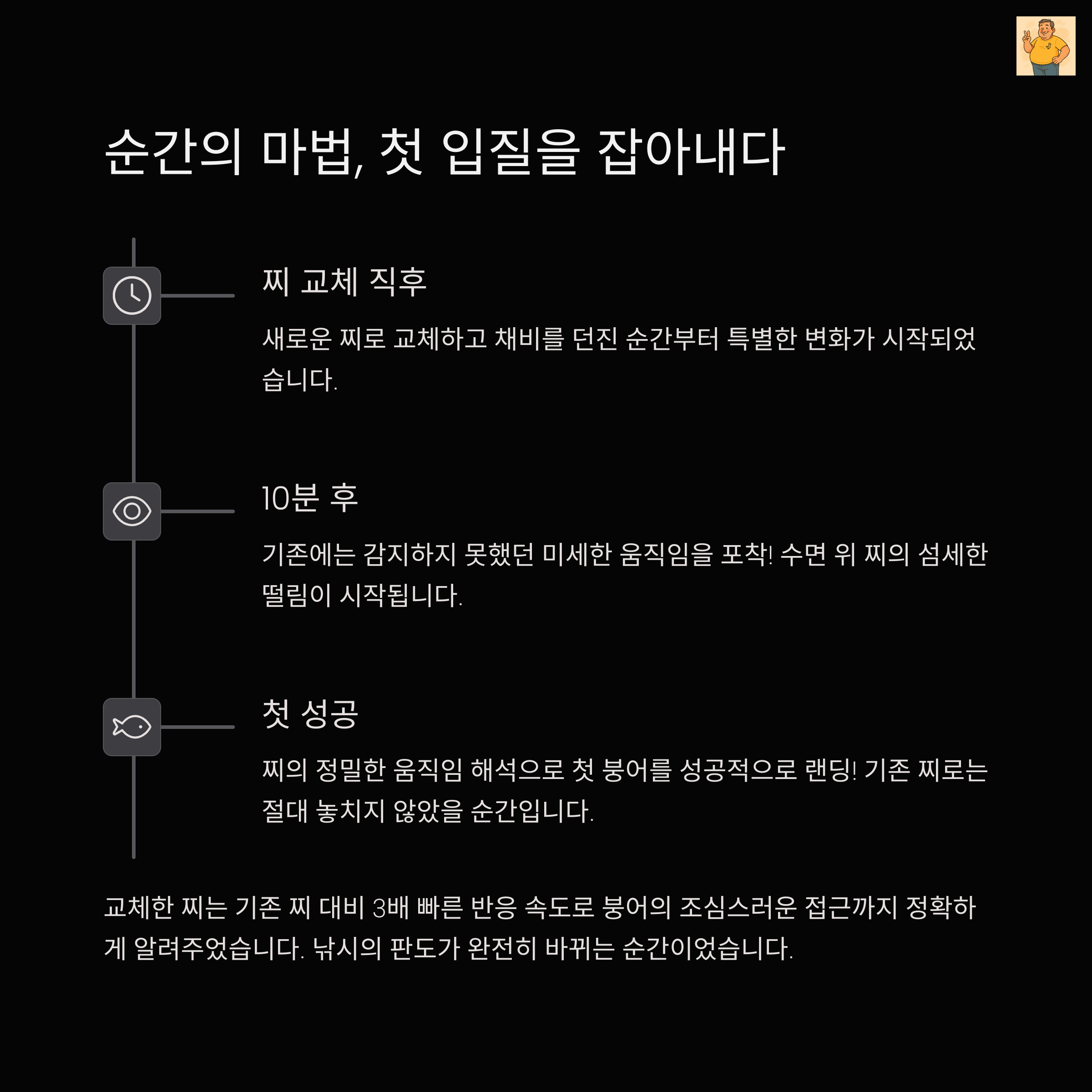 결국 찌 교체는 오늘 낚시의 결정적인 전환점이 되었죠. 🎯