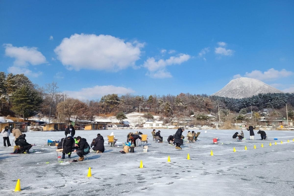 추운 겨울 양평 얼음위에서 즐기는 빙어낚시 및 겨울놀이 축제