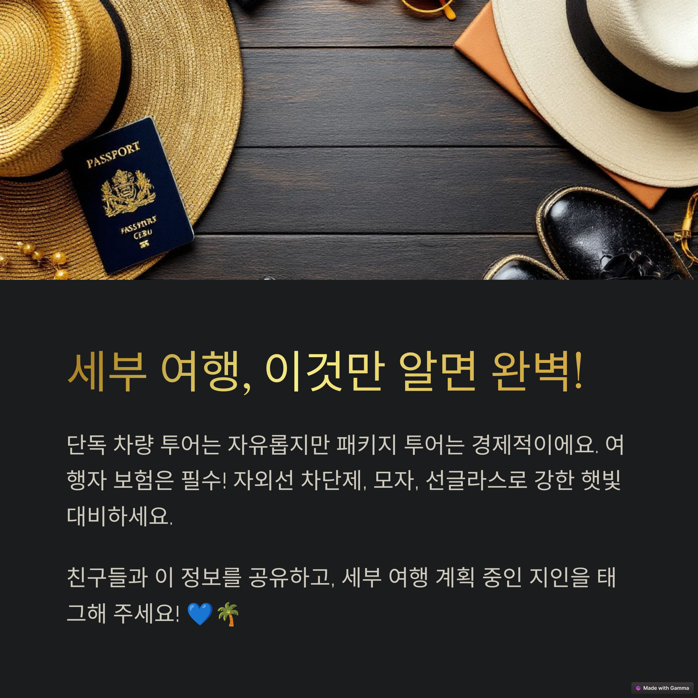 세부 여행을 준비 중이신가요? 또는 다녀오신 경험이 있으신가요? 추천 코스나 꿀팁이 있다면 댓글로 공유해주세요. 다양한 분들의 여행 경험이 큰 도움이 됩니다!